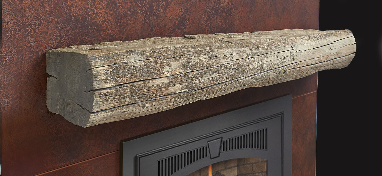 These are realistic reproductions of 150-year-old fir timber. Our artists individually hand-paint each mantel with incredible attention to detail. We challenge anybody to tell the difference between this reproduction and the authentic timber. Hand-Hewn Timber Legs are also available for the 6’ mantel to achieve a three-sided Timber mantel installation.